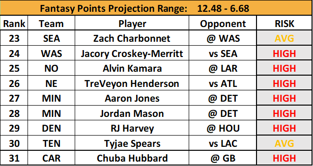 | 18 | PIT | Jaylen Warren | vs IND | AVG |