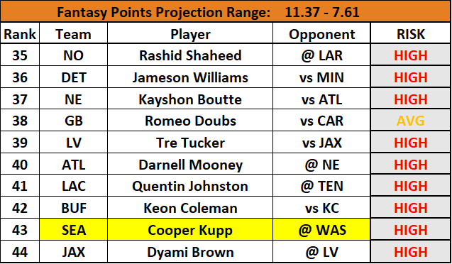 Fresh off a WR1 overall finish, Troy Franklin is edging ahead of Marvin Mims Jr. as Denver’s #2 target. Both remain volatile, and a trip to Houston to face the league’s #1 defense will likely rein in expectations.