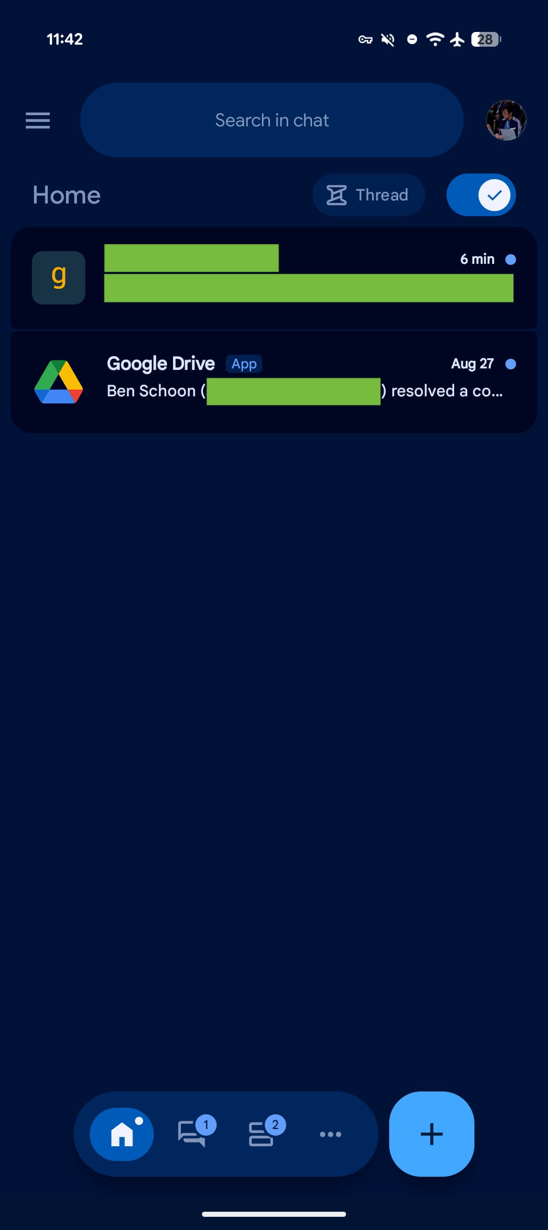 Like Gmail, Google Chat makes use of a chat app bar and places the list of messages in a container. The floating toolbar leverages a pill to highlight what tab you’re currently viewing, while the chat interface places the ‘plus’ menu in a vertical pill.