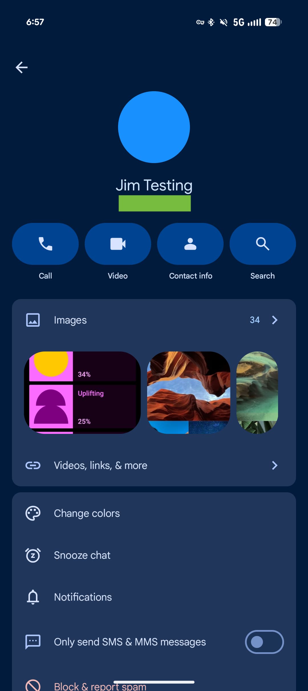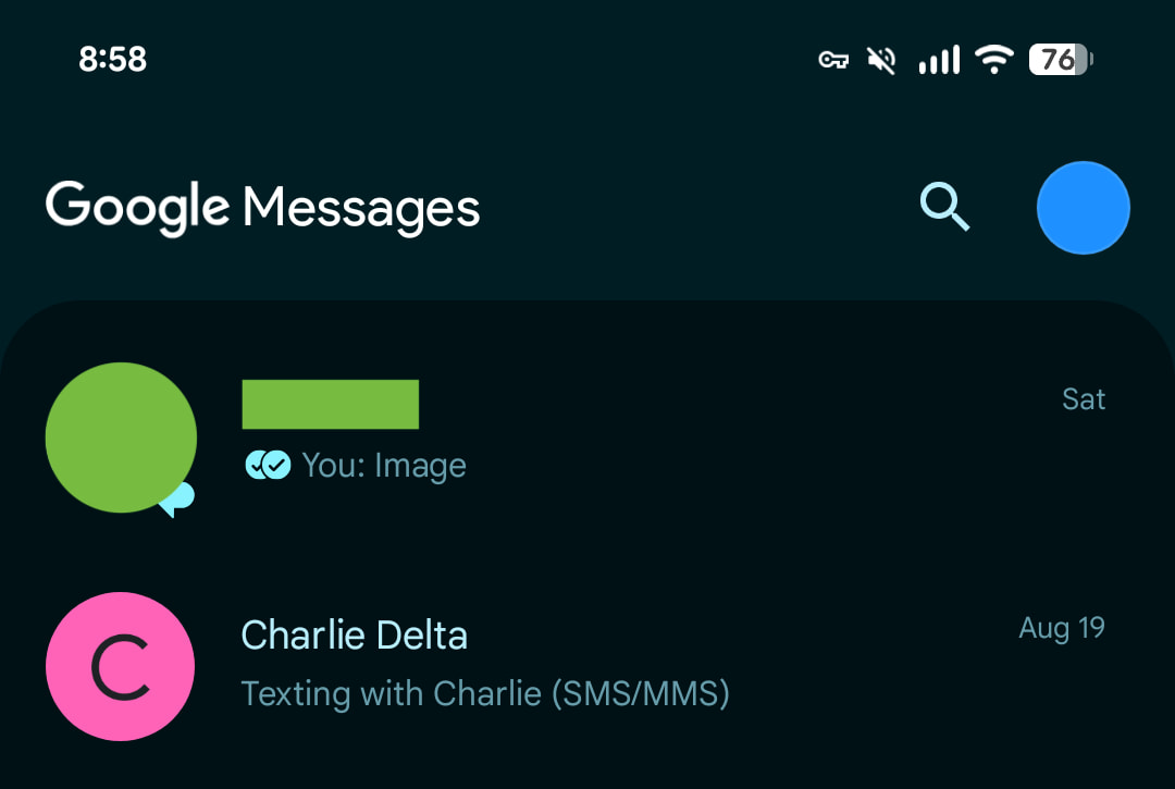 With the initial Material 3 Expressive redesign, the app bar had a four-color ‘G’ in a circle followed by “Messages.” It’s now “Google Messages,” with the full color logo in the light theme. With the dark theme, it’s white text on your Dynamic Color background.