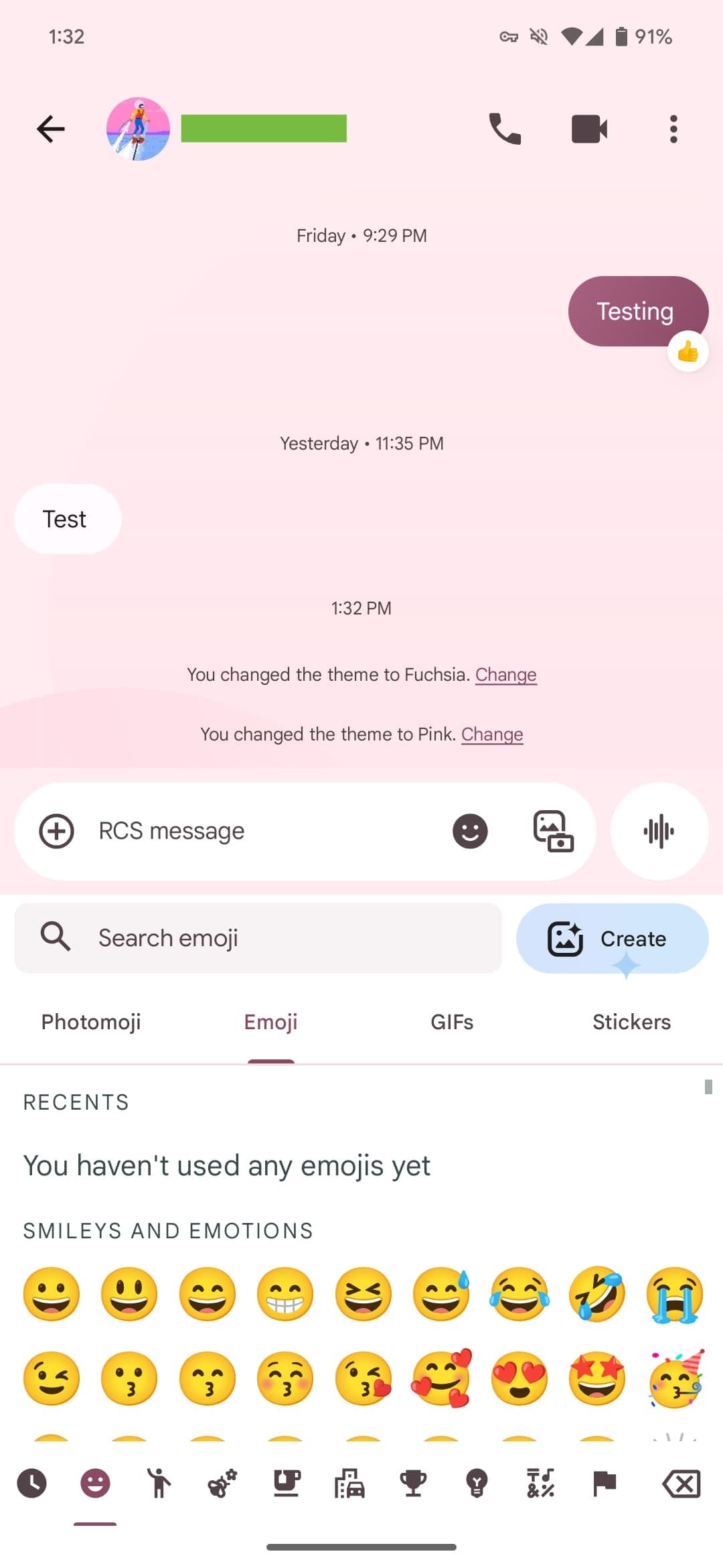 A small tweak sees the Call, Video, Contact info, and Search buttons become pills. In comparison, the previous circles were under-sized.
