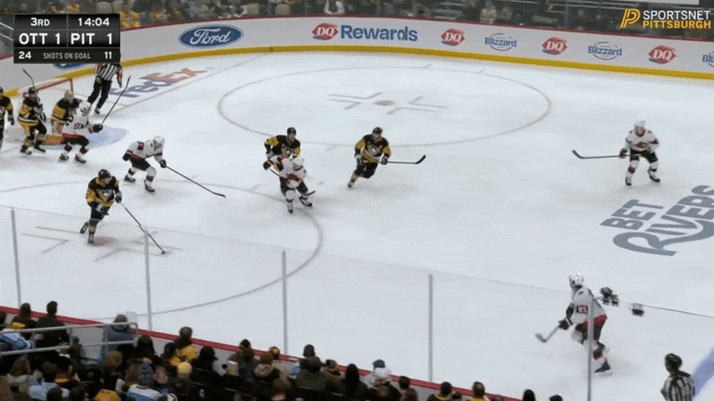 Mercifully, this brand of hockey’s been largely buried in that era, but it’s been unearthed at least with these guys. And even though Dan Muse and staff had warned his players about it after the morning skate in Cranberry, even though Muse then publicly stressed that it’d represent an unusual challenge, it still came across in the first period as if the Penguins thought they were still facing the infinitely looser Blackhawks or Rangers … and then the same in the second period, and then the third. They’d either get hemmed in deep in the defensive zone, or they’d slam into a wall of white sweaters at the Ottawa blue line.