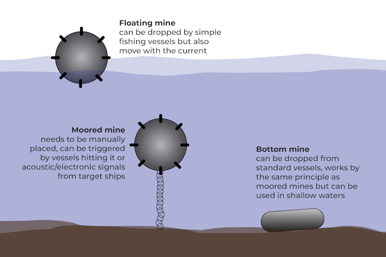 Sometimes mines can be floating on the surface of the water, so they’re visible. Often, though, mines are submerged or moored. The US would need to send in divers or remote-controlled vehicles launched from ships to remove them. This would take weeks or perhaps even months.