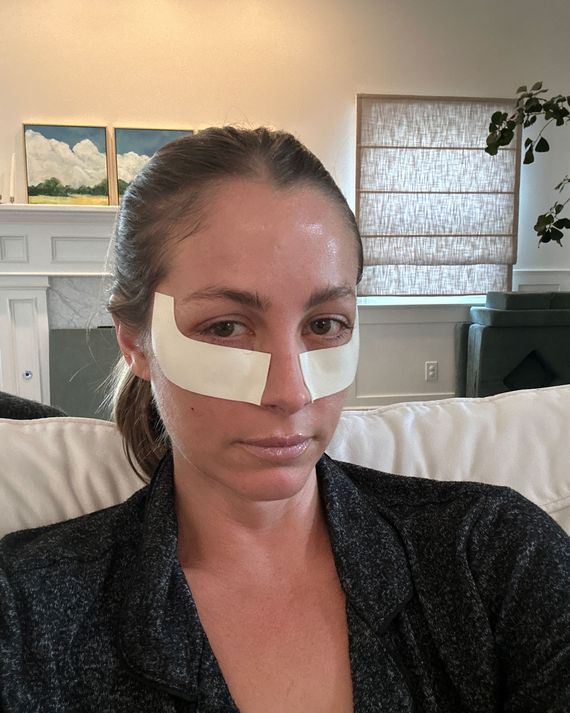 Right after the procedure, you look crazy. I had big bandages on me. When I looked under them, I was like, Whoa. The two stitches from the fat transfer were very purple and puffy. The whole shape of your face changes during those really early days because you’re so swollen.