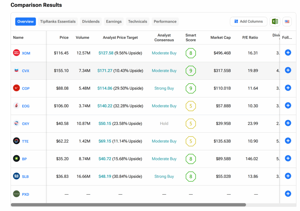 On Wall Street, ExxonMobil and Chevron’s shares both have a Moderate Buy consensus rating based on analyst assessments over the past three months — 12 Buys and 7 Holds for the former, and 11 Buys and 5 Holds for the latter.