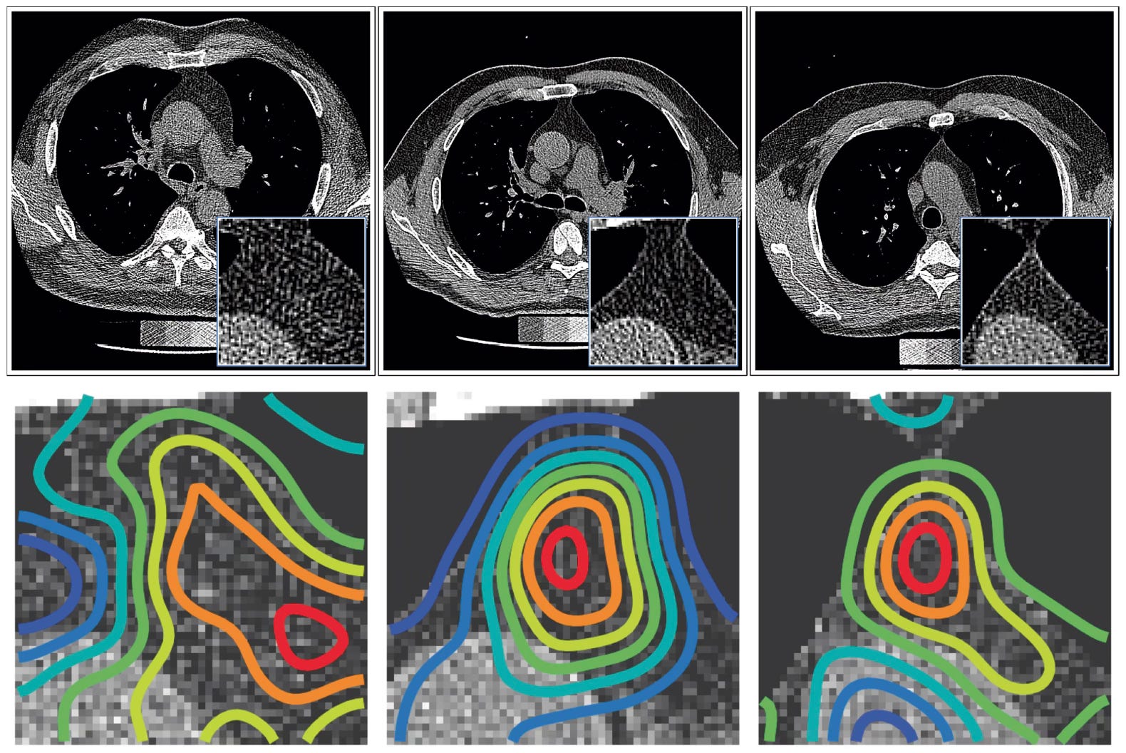 Below are a few saliency maps from the occlusion sensitivity that indicate the thymic bed focus, not affected by neighboring structures, using the jet color scale.